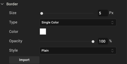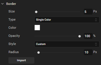 The Border properties on the Skins tab become activated when the border width is greater than 0. Upon setting the border size to 1 or greater, the other border properties become editable. For the border color you can pick a single color or a multi-step gradient. And you can change its opacity.