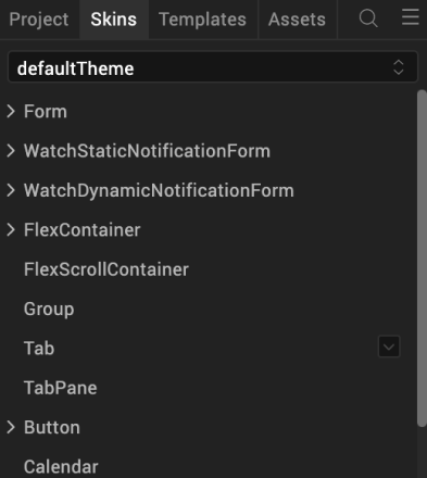 - On the Skins tab, locate the type of widget that the skin you want to rename is categorized under. If the skins currently don't appear under the type of widget, click the widget type to open the category and display the skins.