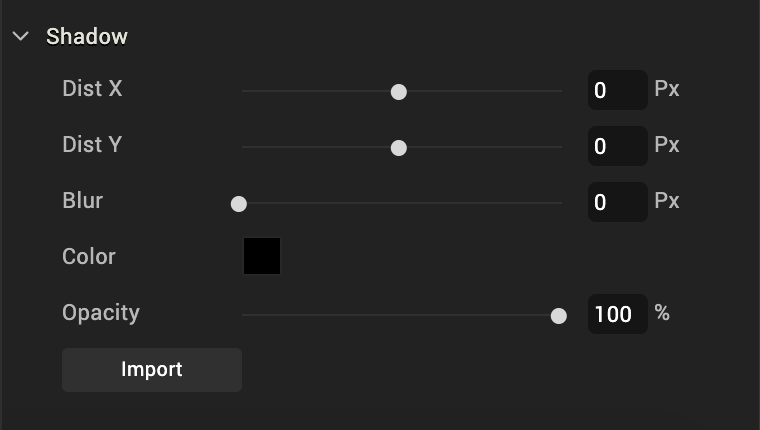 - DistY: Denotes the vertical shadow distance away from the widget.