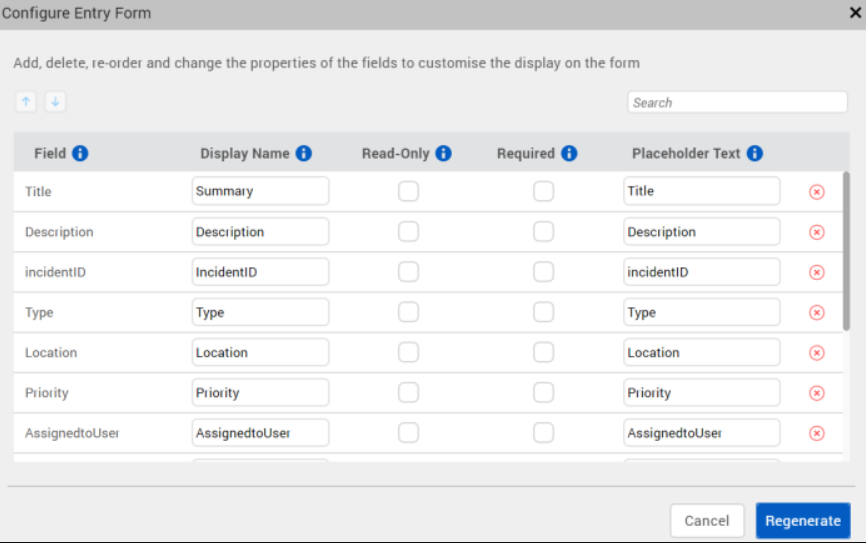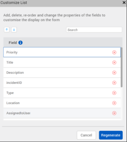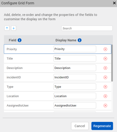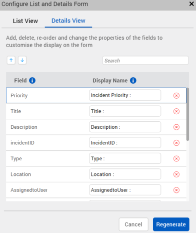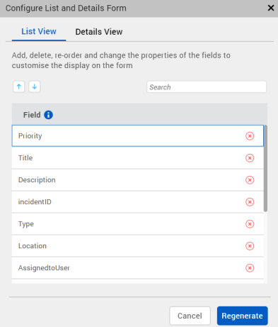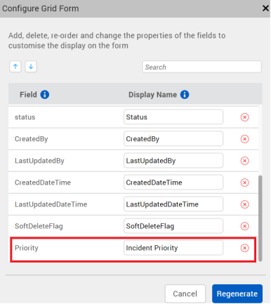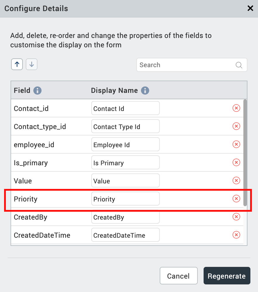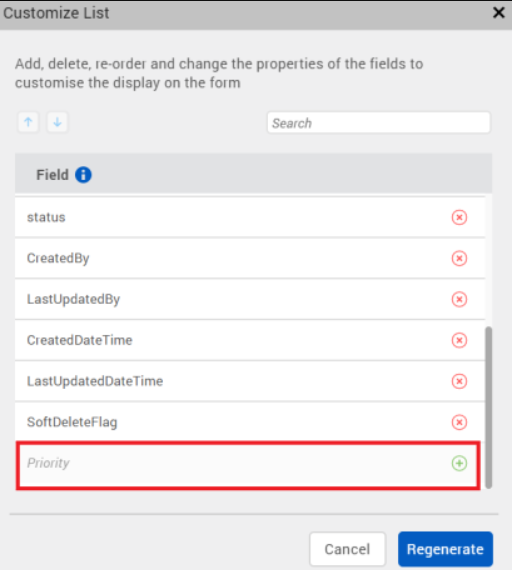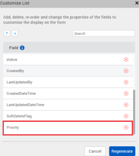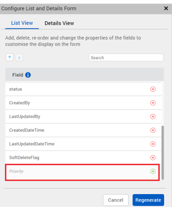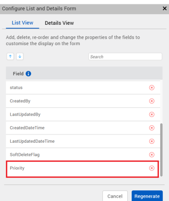 After you have performed the necessary operations for the Priority field in the Configure Entry Form window, click Regenerate. The dynamic properties of the Priority field are saved, and the updated frmCreate form is generated on the Project Canvas.