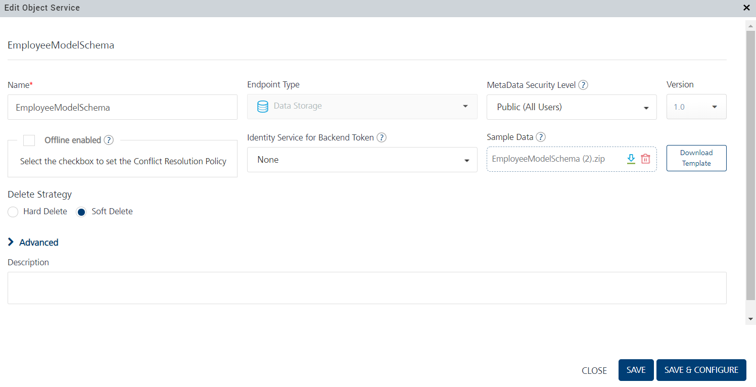 Choose the required Object service; if no service is available in your Volt MX Foundry Console, you need to configure one. Specify the details in the required fields, and then click Save & Generate. For more information on how to create an Object service, click here.