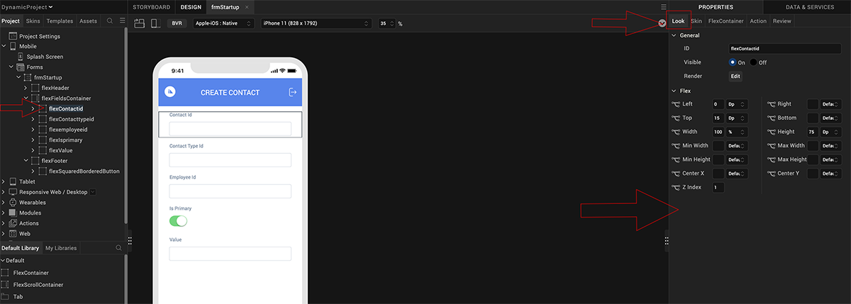 - On Project Explorer, select the parent FlexContainer of the component, and then go to Properties panel > Action.