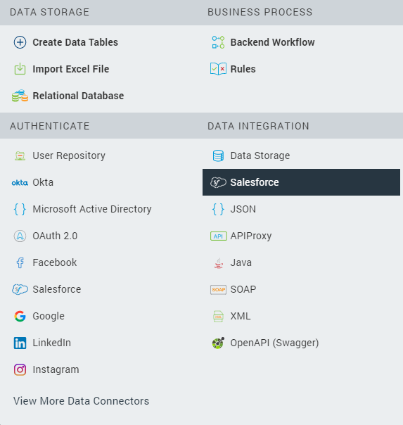 Under Get Data, select an Integration service; in this case, Salesforce.