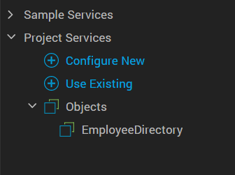 5. Once the service is created, it is displayed in the Project Services list. You can then directly drag and drop the service onto a form and start using it.