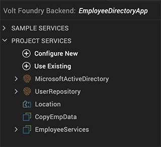 From the Data & Services panel, configure existing sample services through a simplified view of Volt MX Foundry console. You can view the associated services in your corresponding Volt MX Foundry app.