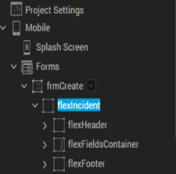 - Select the Pass data with navigation check box. The form frm1and all of its widgets are listed in a nested structure along with defined local Variables, if any.