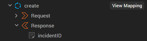 When you use the create method with primary key as incidentID, a Response parameter is automatically generated based on the run-time response of the app. under create > Response on the Data & Services panel.