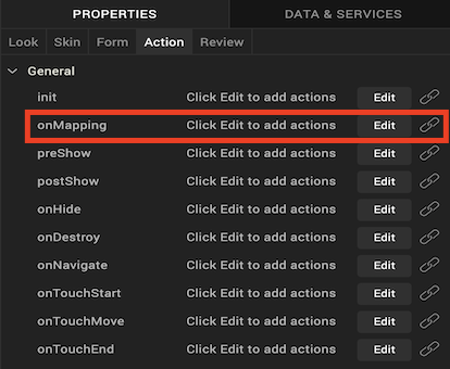 - Under the Component section, for the onMapping Event, click Edit. The Action Editor window appears, with Diagram View open by default.