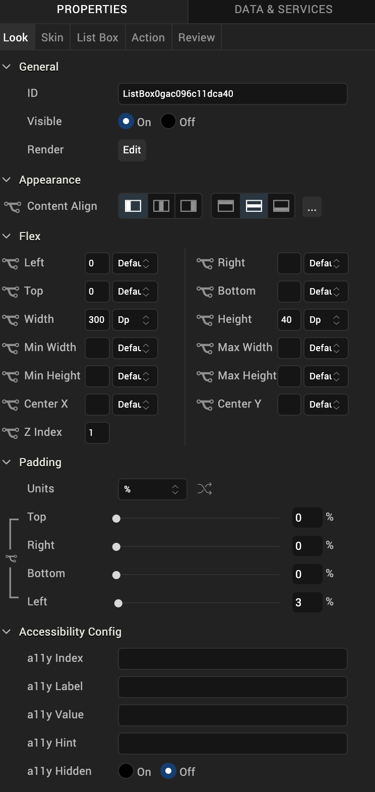 ListBox properties specify properties that are available on any platform supported by Volt MX Iris, and assign platform-specific properties.