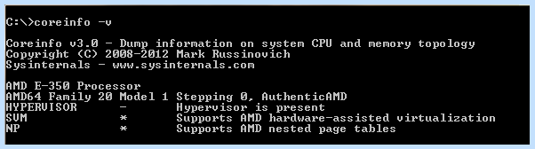 If you have an AMD processor, then an asterisk (*) is displayed for NP (Nested Page tables), as seen here.