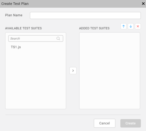 If you want to remove a test suite from the test plan, select the test suite and click the delete icon. - Type a name in the Plan Name box and click Create.