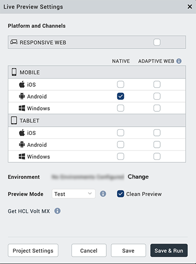 If you want to connect to a native device instead of viewing the app using live preview, ensure that your system and the device on which you want to run the app are on the same network.