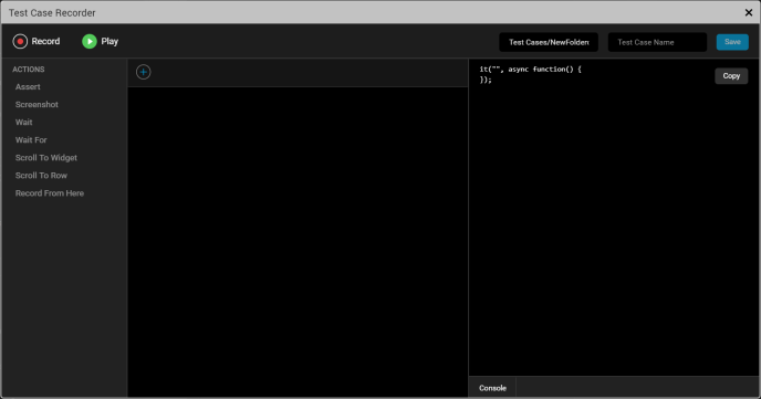 You can create a test case by recording your activity on the app. The app must be previewed by using the Live Preview feature or launched on a device by using the Build and Publish feature. You can then record the user activity on the app to create a test case. Further, you can edit the recorded test case while or after creating the test case.