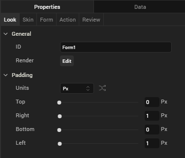 3. Padding: Defines the space between the content of the form and the form boundaries. The following padding options are available for the form.