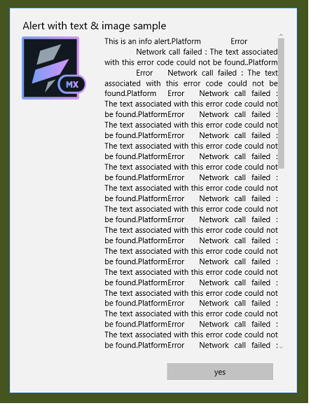 In Android platform, the alert icon can be either a string specifying a local resource, or an image object created using the API: voltmx.image.