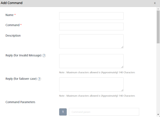 - Reply (for invalid message): Enter the message to be returned when invalid input parameters are used along with the command.