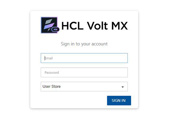 1. Navigate to https://manage.hclvoltmx.com. You will see the log in screen for your Volt MX account.