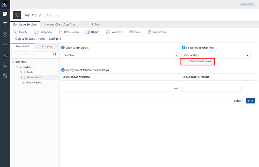 You can enable the Cascade Delete while configuring relationships in the Data Models of the Objects Service. Hence, this is an optional feature.