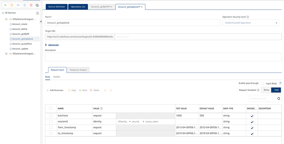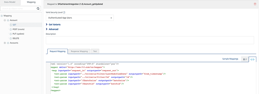 Note: In Object Service Mapping, getVerbMapping can be mapped to the getupdated verb. If the same service can download all the records for a default value of timestamp, this service can also be mapped to the GET verb.