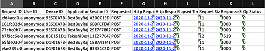 | Http Request (sec) | Displays the time taken (in seconds) to send the request. Click Http Request against a log to display the device payload information. > Note: You can sort the displayed logs based on the request or the response time. You can customize the Http Request by selecting the date and time. For more information, refer Customize Http Request (or) Response. |