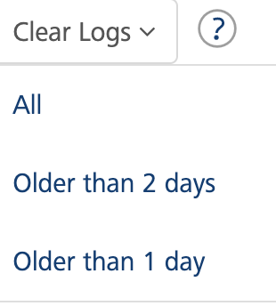 | Clear Logs | Clears the logs. Trace logs older than seven days are automatically deleted. You can also manually delete the logs using Clear Logs. To manually delete the logs, you can perform the following actions: All - Clear all the logs. Older than 2 days - Delete logs older than 2 days. Older than 1 day - Delete logs older than 1 day. For more information, refer Clear Logs. |