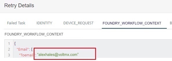 Use Case: An invalid email ID of a user is populated into the FOUNDRY_WORKFLOW_CONTEXT from a backend or a client request, and the same email ID is used in the Email Task to send email notifications to the user. Due to the invalid email ID, the Email Task node fails to send the mail to the user, and this causes the Workflow instance goes into failed state.