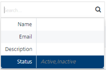 Status: Enter the status as active or inactive in the search field and click Enter.