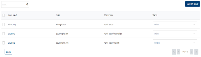 | Status | The status column displays status of the groups as Active or Inactive. |