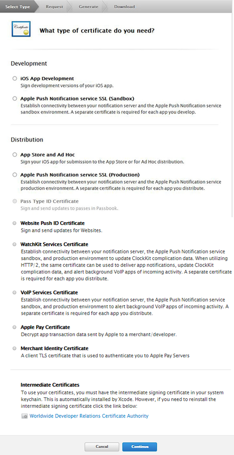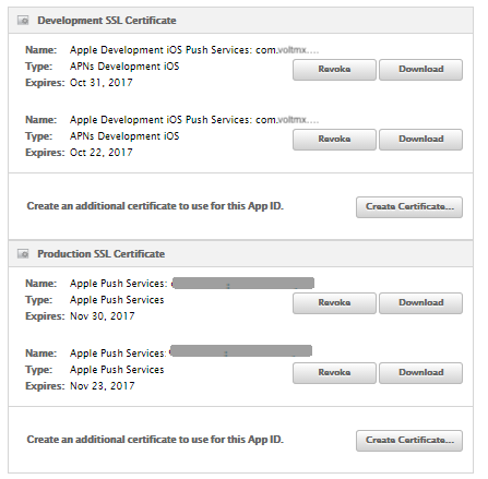 The remaining certificate creation process is the same as described earlier for Push APNS certificate creation.