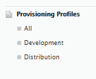 Click on the Provisioning profile (Development/Distribution) and the click on +.