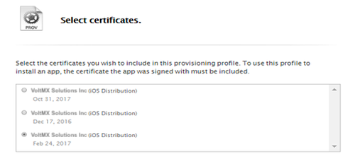 Select the type of the provisioning profile required as per your usecase. Then click continue.