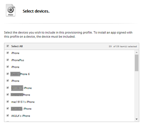 If you are using an Adhoc profile then you must select the devices that are already added in your devices list. This is to register the devices with the current profile.