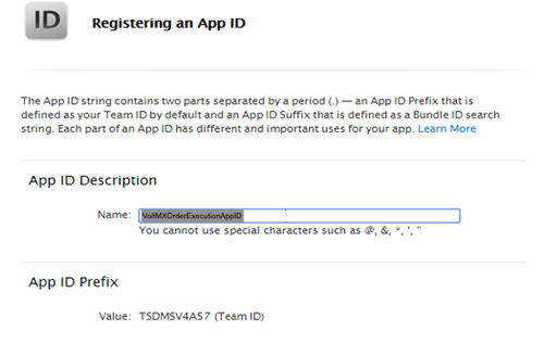 Click on the + icon which appears on the right-side of the page. Fill in the App ID Description and App ID Suffix.