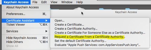 The APNS certificate is needed for the iOS devices to register with Apple to receive notifications. To generate the APNS certificate, follow these steps: