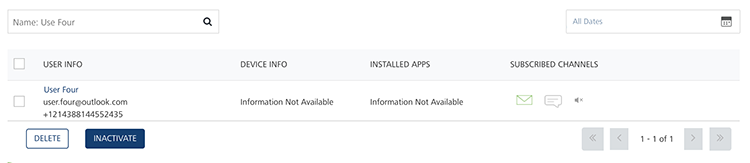 Volt MX Foundry Engagement Services provides search options that help to access and analyze data across Volt MX Foundry Engagement Services Console. The search option automates the finding of data and helps users navigate it with a single view across Volt MX Foundry Engagement Services.