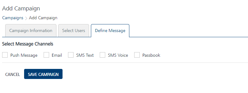 You can create a multi-channel campaign to send users. To send a campaign message, you can choose from the four notification types: