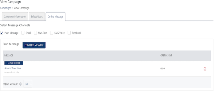 You can resume a campaign either from the Campaigns home page or from the View Campaign > Define Message page. You need to resume a campaign to send the campaign again.
