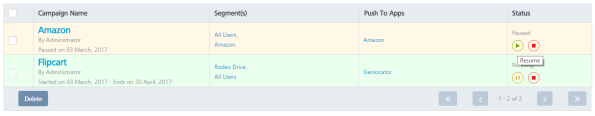 4. Click Yes to continue. The system displays the confirmation message that the campaign is resumed successfully. The color and the status of the resumed campaign changes in the list-view.