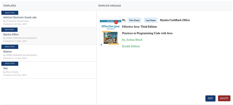 The system displays the confirmation message that the template deleted successfully. The deleted template is no longer displayed in the templates list-view.