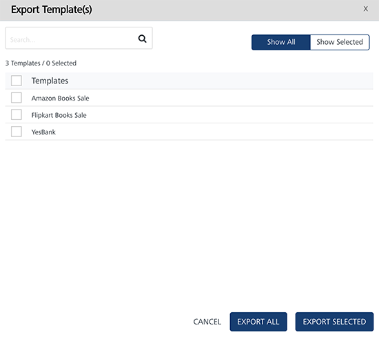Export All: Helps you export all the push templates present in the Engagement server to a zip file.
