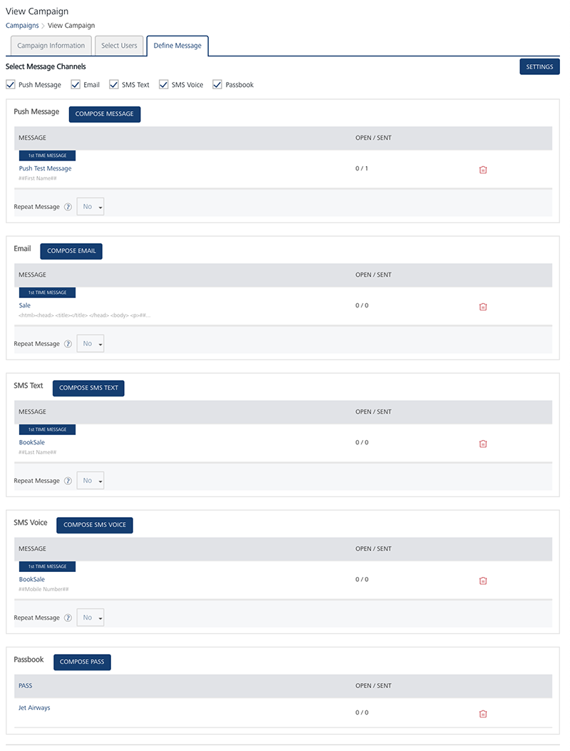 For more details about how to define campaign message refer, Defining Campaign Messages