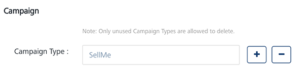 The campaign type is set when a new campaign is created and the name is commonly used to refer the specific campaign. Lisa adds a new campaign type as SellMe.
