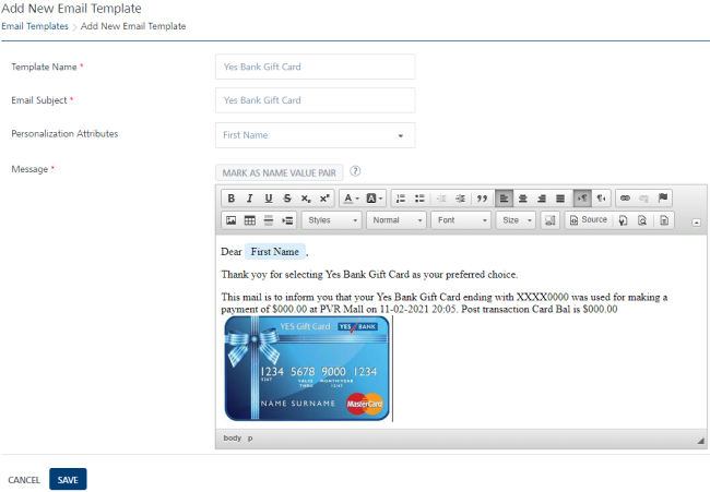 To know more about Templates, refer: Adding Templates (push, SMS, email and pass)