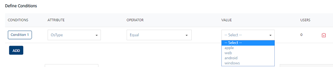 For the user attribute as OsType, select the OS type from the drop-down list under the Value column.