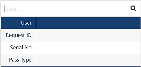 Search field: Click in the Search field to view options to search a pass. You can search passes based on the following criteria: