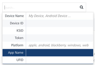 | Device Info | Device Name: Displays the device name, such as John Doe’s Phone. The system displays a text such as Android Device or Apple Device in the Device Name column when the device name is not set for the Android and Apple devices respectively DeviceID: Displays the device IDs of registered devices. When an application registers for push notifications, the device ID of the mobile device is registered in the Push Notification Service (PNS). When PNS wants to send a push message, the cloud uses the device ID to locate the device on which the client application is installed, and then sends a push notification Platform: Displays a list of targeted platforms configured for each of the added devices |