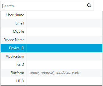 Device ID: Enter the device ID of the required device in the Search field and click Enter.