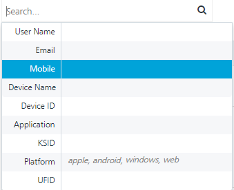 Search: Click in the Search field to view options to search a user. You can search users based on the following criteria: