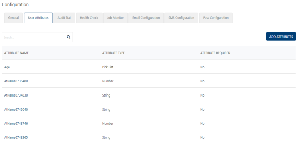 Configuration > User Attributes: On the Configuration page, click the User Attributes tab.