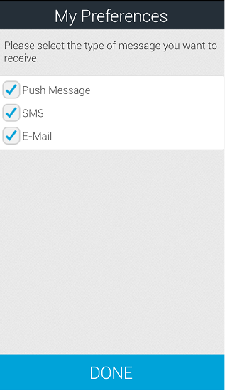 The My Preferences screen appears. The My Preferences screen helps you to subscribe for push, email, and SMS notifications.